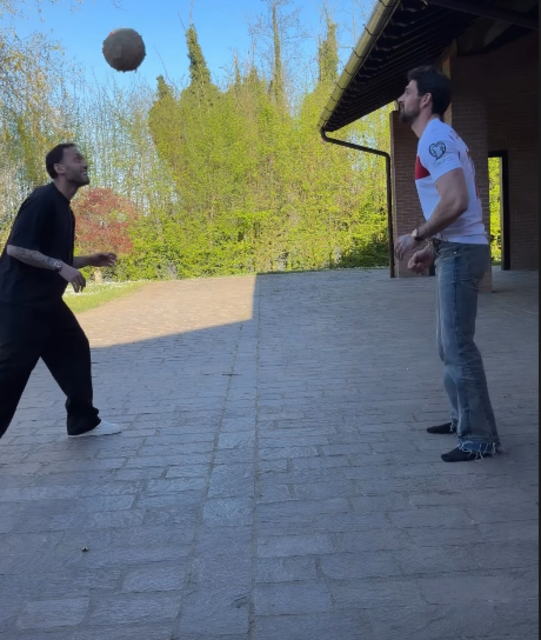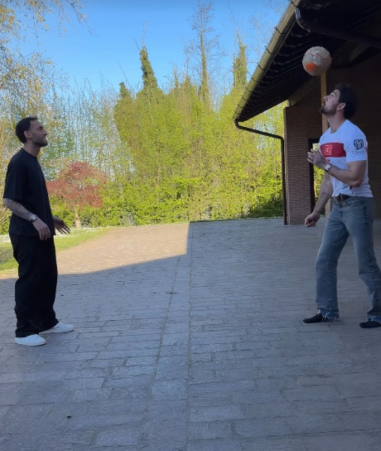 Çalhanoğlu, İtalya'da dünyaca ünlü oyuncu Michele Morrone ile bir araya geldi. İkilinin açık havada top sektirdiği anlar, futbolcunun sosyal medya hesabından paylaşıldı.