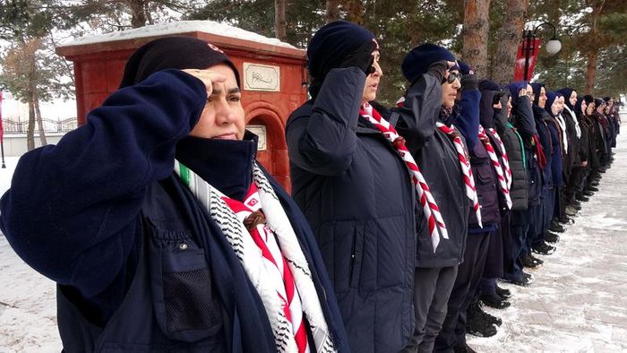 Sarıkamış Harekatı'nın 110'uncu yıl dönümü etkinlikleri kapsamında Erzurum kent merkezinde bir dizi etkinliğe katılan izciler, Karskapı Şehitliği’ni ziyaret etti. Telsizden okunan Kur'an-ı Kerim’in ardından edilen duaya amin diyen izciler, karla kaplı şehit mezarlarını temizledi.