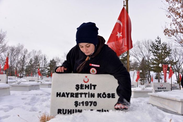 Suriye'deki savaştan kaçarak Türkiye'ye gelen Hanin Şemrek (19), diğer izci liderleriyle birlikte şehit mezarlarını ziyaret etti. Mezarda kar temizliği yapan Şemrek, "Dedelerimizi, atalarımızı görmeye geldik. Onların o zamanda yaşadıklarını bir nevi olsun hissetmek için onların yanlarına geldik. Allahuekber Dağları’na da çıkacağız" dedi.