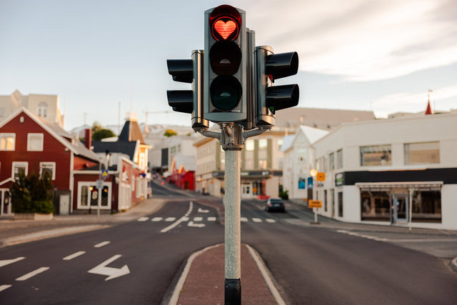 Akureyri kentinde trafik ışıklarında kırmızı kalpler vardır. Bunun sebebi ise 2008 yılında insanların ekonomik krizde bunalıma girmesidir. İnsanların moralini yükseltmek için belediye trafik lambalarını kalp şeklinde tasarladı.