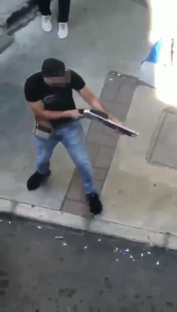Pompalı tüfekle ateş ederek 5 kişinin hafif şekilde yaralanmasına neden olan şüpheli, bir vatandaş tarafından saniye saniye görüntülendi.