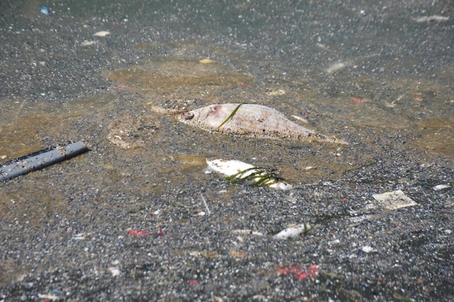 Ölü balıklar ve deniz yüzeyindeki kirlilik ilçede pis bir kokuya neden olurken, sinekler de çoğaldı.