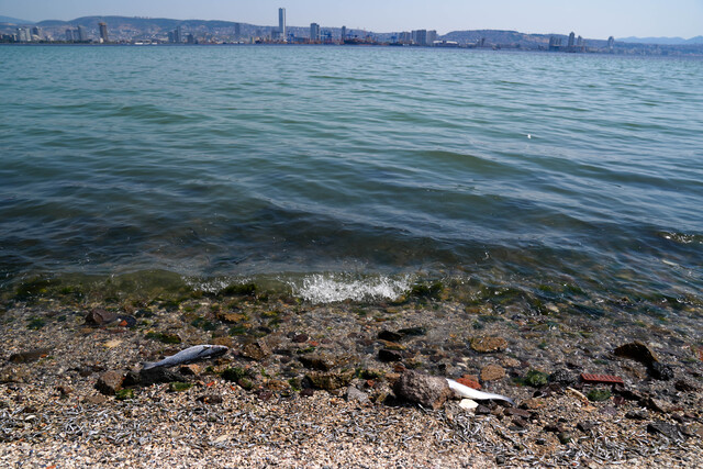 İzmir'in Bayraklı ilçesi sahilinde ölü balıklar kıyıya vurdu. Ölü balıklar ve kirlilik nedeniyle pis koku oluşurken, bölgede sinekler de çoğaldı. Kıyıya vuran balıkları görenler, durumdan tedirgin olurken, Tarım ve Orman İl Müdürlüğü ekipleri sudan analiz için numune alarak inceleme başlattı.
