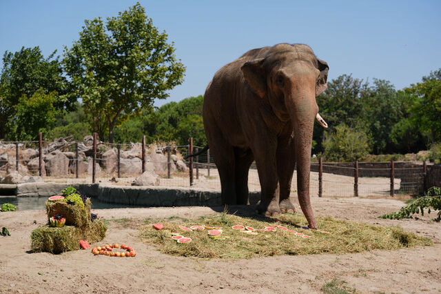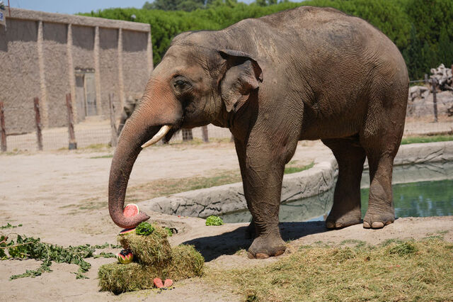 İzmir Doğal Yaşam Parkı sakinlerinden fil 'Winner' için 22'nci yaş günü kutlaması yapıldı