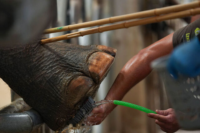 Doğum günü etkinliği öncesi Winner'a ayak bakımı yapıldığını anlatan Özgen, "Fillerin ayak bakımını yaparken keyifli bir oyuna çeviriyoruz. Filler dünyada en büyük karasal memeliler. Ayakların bakımını haftada iki üç kez yıkayarak kontrollerini yapıyoruz. Bu bakıma aslında fillerin pedikürü diyebiliriz. Tırnaklarını kesiyoruz, törpülüyoruz. Ayak altındaki fazla dokuyu alıyoruz" dedi.