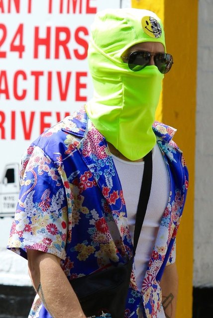 Üzerine çiçek desenli bir gömlek giydiği görülen Leto, kendini kafasına taktığı neon yeşil renkli kar maskesi ve güneş gözlüğüyle kamufle etmeye çalıştı.