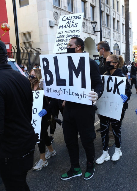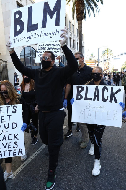 Şarkıcı, taşıdığı pankartında "Siyahların hayatı önemlidir" mesajını verirken, Rodriguez de "Yeter artık" yazılı döviziyle protestoculara eşlik etti.