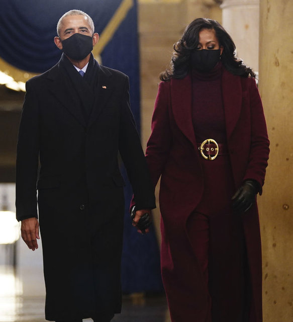 Balıkçı yaka kazağı, geniş paça pantolonu, kabanı ve kemeriyle sade ve şık görünen eski First Lady’nin kıyafetini Beyonce ile de çalışan siyahi Amerikalı tasarımcı Sergio Hudson hazırladı.