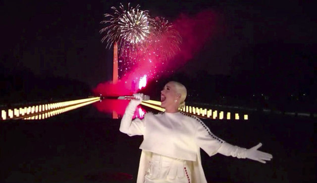 Joe Biden'ın yemin töreni etkinliklerinin bir parçası olarak sahneye çıkan Katy Perry, beyaz bir elbise giydi. Havai fişekler patlarken ünlü şarkısı Fireworks'u seslendiren Perry, peleriniyle sıra dışı görünüyordu. Kıyafetteki dikkat çeken başka bir unsur da kırmızı ve mavi düğmeler oldu. Kırmızı, beyaz ve mavi renkleriyle ABD bayrağına saygı duruşunda bulundu Katy Perry.