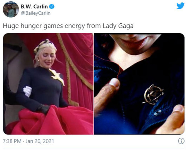 Ünlü şarkıcının hayranları Jennifer Lawrence’ın Açlık Oyunları'ndaki kıyafetleriyle Gaga’nın görünümü arasında benzerlikler fark etti.
