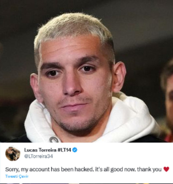 Lucas Torreira ardından da hesabının çalındığını açıklamıştı. Futbolcu, "Üzgünüm, hesabım 'hack'lendi. Şimdi her şey yolunda Teşekkür ederim" demişti.