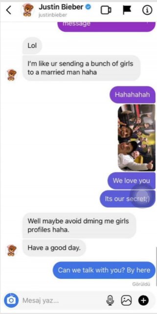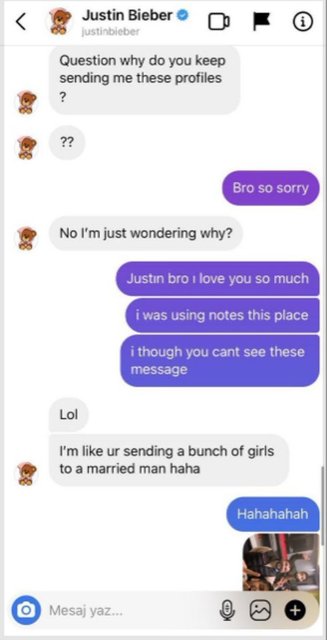 Tilaver, Bieber'ın direkt mesaj kutusunu not defteri gibi kullandığını gösterirken kendisine gelen mesajla neye uğradığını şaşırdı.