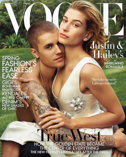 12 haftalık beraberliğin ardından eylül ayında evlenen Justin Bieber-Hailey Baldwin çifti, Annie Leibovitz’in fotoğrafıyla Vogue Amerika mart sayısının kapak konuğu oldu. Bu aynı zamanda çiftin, beraber ilk profesyonel çekimi olarak kayıtlara geçti.