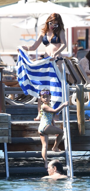 Kaan Tangöze ve kızı İlayda'nın deniz keyfi bittiği sırada kızını iskeleden alan Kıvılcım Tangöze, plajın arka bölümüne geçti.