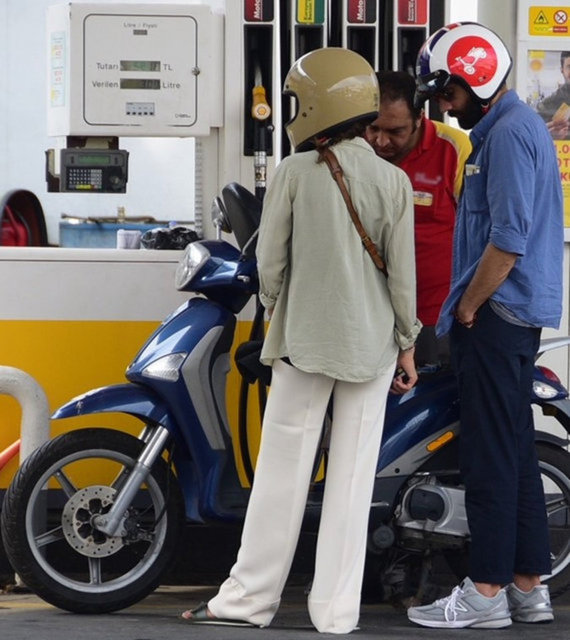Geçtiğimiz temmuz ayında da mütevazi motosikletleriyle Etiler'de turlarken objektiflere yansıyan çift, daha sonra Beşiktaş'ta bulunan bir benzin istasyonunun yolunu tutmuştu.