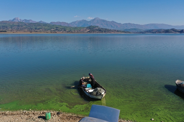 Kahramanmaraş'ın Andırın ilçesinde 40 yıl önce su altında kalan Kıyıkçı Mahallesi sakini kadınlar, eskiden ekip biçilen tarlaları ve mahallelerinde balık avlıyor