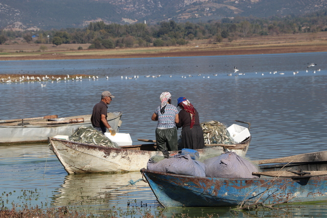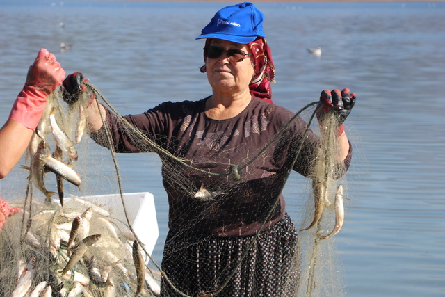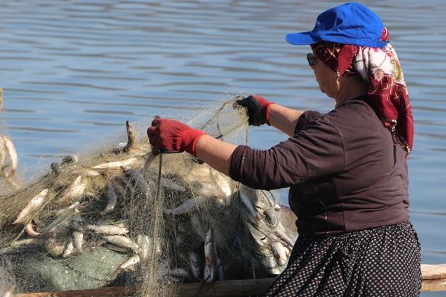 Göle bıraktıkları ağları toplayan kadınlar, avladıkları kızıl kanat, dikenli kefal gibi balıkları kasalara doldurup toptancılara satıyor. Balıkçılığın geçim kaynağı haline geldiği mahallede göle açılmayan kadınlar da ağ üretiyor, yıpranan veya yırtılan ağların onarımını yapıyor.