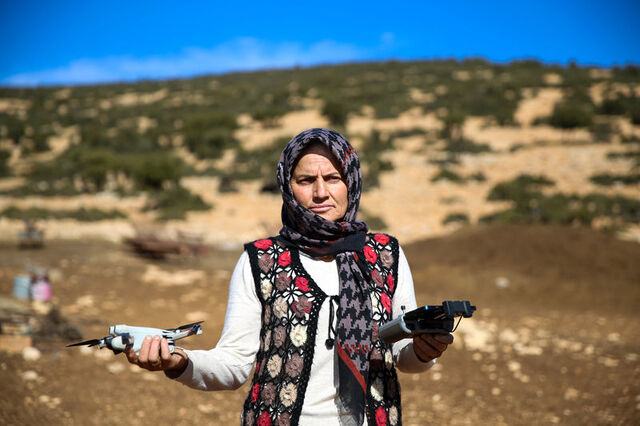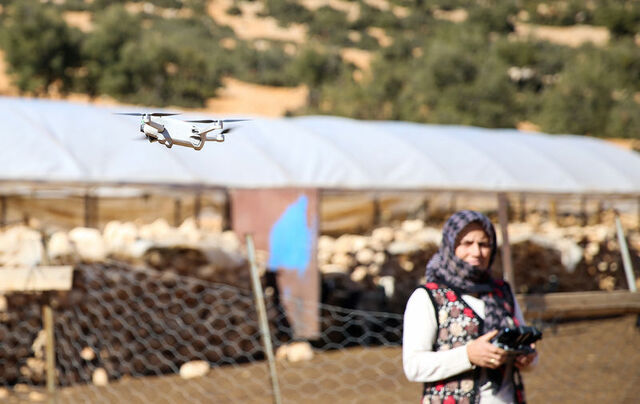 Kadın çoban, sürüsünün takibini dron ile yapıyor