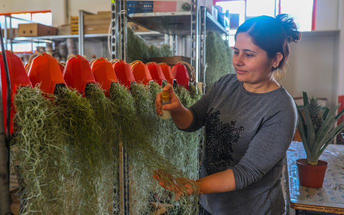 Antalya'da dekoratif çiçekler üzerine üretim ve dağıtım yapan bir firmanın, yurt dışından fide olarak getirilip yetiştirdiği hava bitkisi (Tillandsia), kadınların yeni gözde çiçeği oldu.