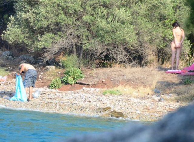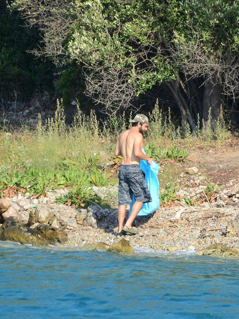 Neslihan Atagül ile Kadir Doğulu, botla koydan ayrılmadan önce de temizlik harekatına başladı.