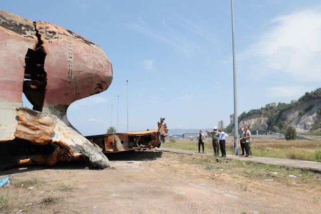 Daha önce üstünde Kafkametler yazısı görülen kaptan köşkü çıkarılan ve deniz altında zincir atarak parça parça yüzeye çıkarma işlemi süren gemiyle ilgili Zonguldak Valisi Osman Hacıbektaşoğlu, çalışma bölgesinde incelemelerde bulundu.