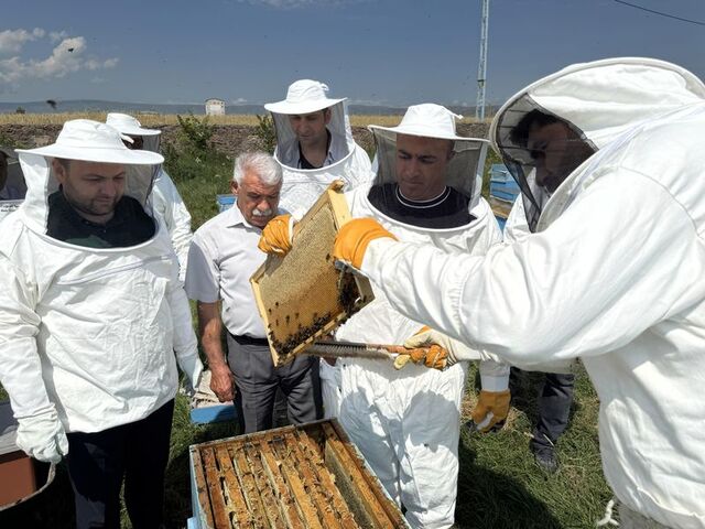 Halil Efendi Mahallesi'nde bulunan Kafkas Arısı Üretim, Eğitim ve Gen Merkezi'ndeki kovanların bal süzümüne Ardahan Valisi Hayrettin Çiçek de katıldı.