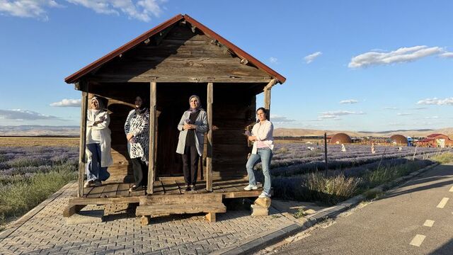 Lavanta tarlası içinde kafe kuran girişimci kadınlar, mor tarlaları görmeye gelen ziyaretçilere hem lavantadan elde edilen ürünleri satıyor hem de ev yapımı yiyecekler ikram ediyor.