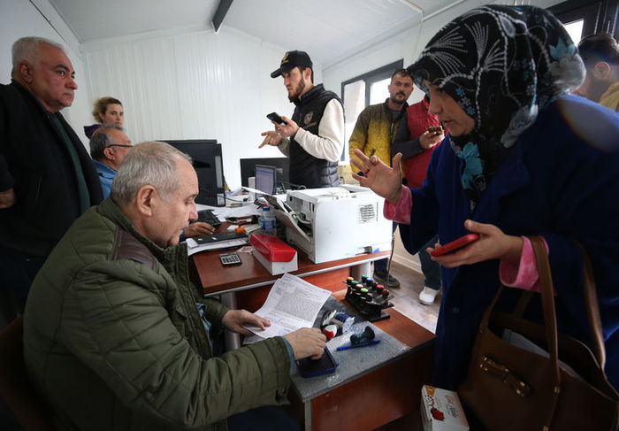 Depremlerde binaları zarar gören bazı noterler de konteynerlerde faaliyetlerine konteynerlerde devam ediyor. Notere gelen vatandaşlar, konteynerde işlemlerini yaptırıyor.