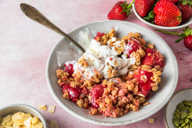 Bu sırada çilekleri yıkayın, dilimleyin ve müslinin üzerine ekleyin. İsteğe bağlı olarak üzerine biraz daha bal ekleyebilirsiniz. Afiyet olsun!