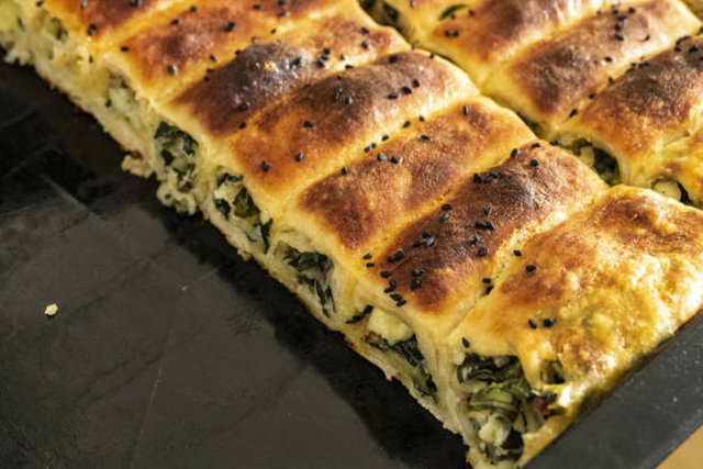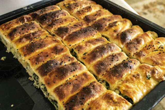 Üzerlerine çörek otu serptiğiniz börekleri 180 derece fırında 40 dakika pişirin.