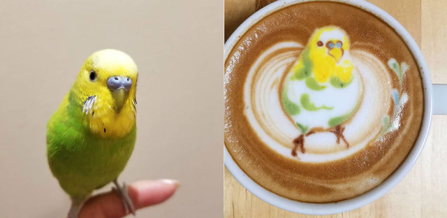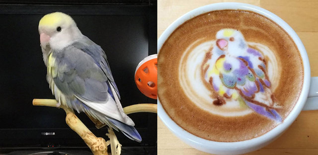 Kuşları neredeyse birebir kahve köpüklerine resmeden Japon kadın, kuş sahiplerinden çok fazla kahve talebi alıyor.