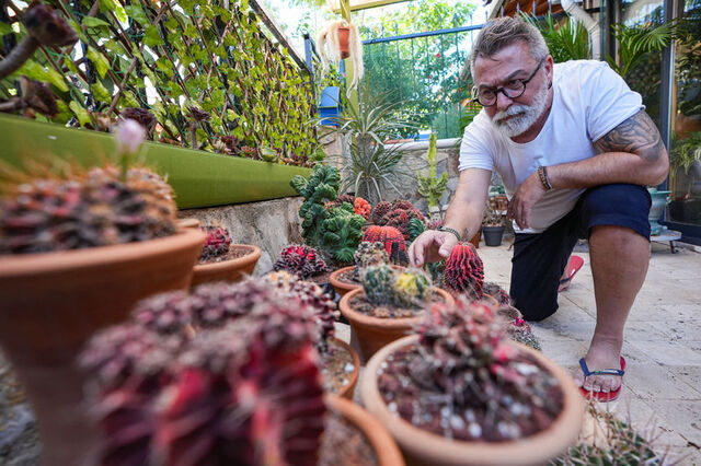 Bahadır Özkalkanlı, Mordoğan'a yerleştiğinde kaktüslerinin olmaması nedeniyle yalnızlık çektiğini söyledi.