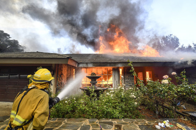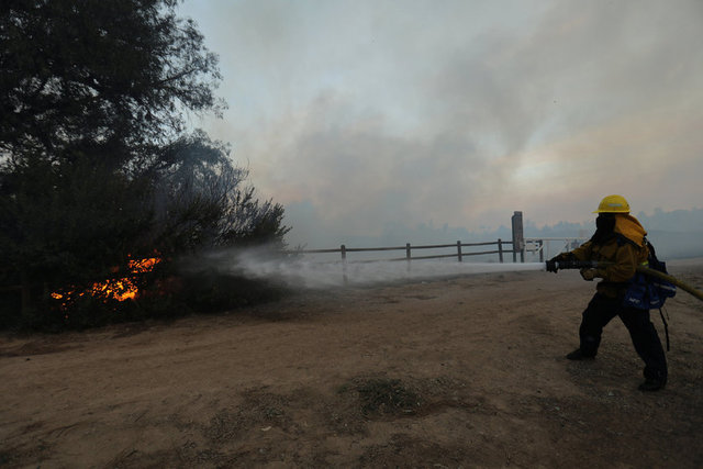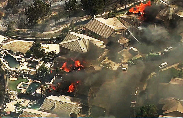 Kaliforniya'nın güneyinde yer alan Los Angeles'in güneyindeki Orange yönetim bölgesi içinde kalan Anaheim Hills'de çıkan yangınlarda varlıklı ailelere ait onlarca ev kül oldu.