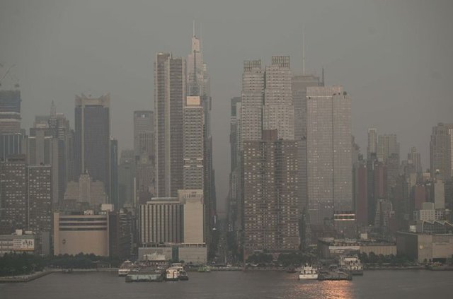 Kanada'da Quebec eyaleti ve diğer bölgelerdeki yangınların oluşturduğu dumanların, rüzgarın etkisiyle ABD'nin kuzey kentlerine ulaşması nedeniyle New York kentinde günlük yaşam olumsuz etkilendi.