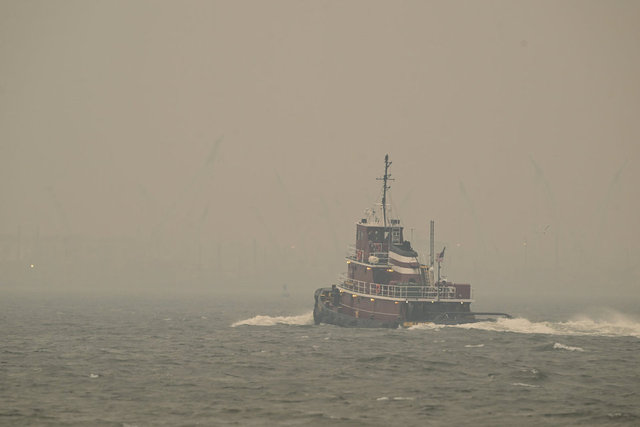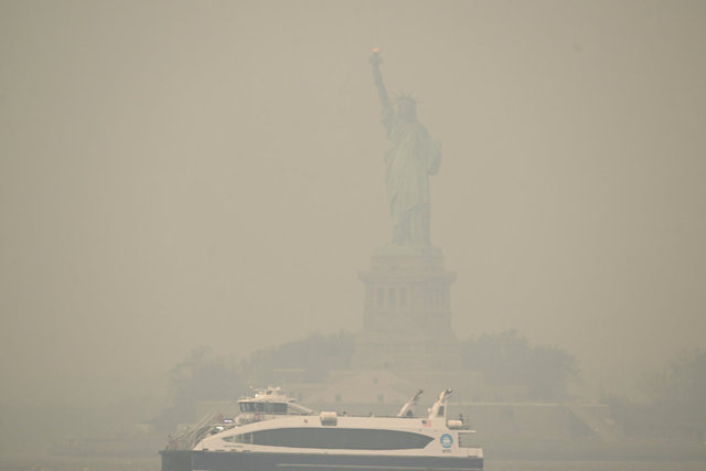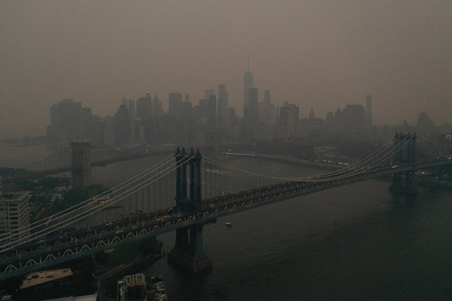Gün boyu puslu havaya sebep olan New York ve New Jersey bölgelerindeki yangın dumanlarının kokusu hissedilirken, yetkililer, özellikle kalp, akciğer ve solunum yollarına bağlı rahatsızlığı olanları dışarı çıkmama konusunda uyarıyor.