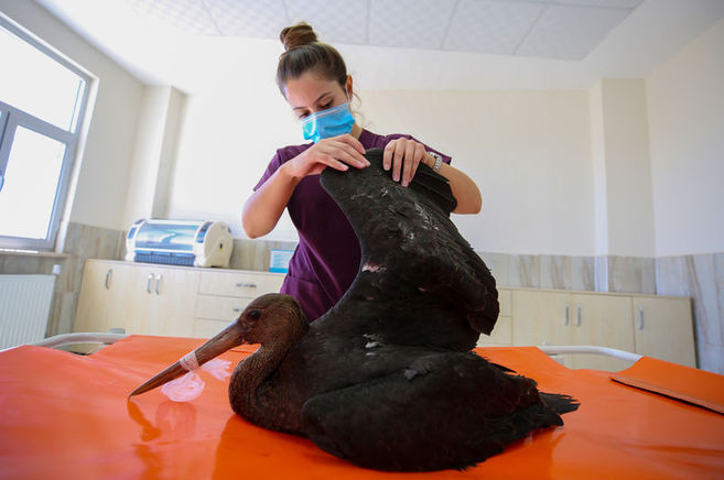 Yaşam alanlarında doğal koşullar ya da insan eliyle zarar gören hayvanların getirildiği merkezde kanatlı türlerin yoğunlukta olduğunu dile getiren Altan, "Merkezimize getirilen bir kara leylek var. Normalde karşılaştığımız bir tür değil. Normalde beyaz leylekleri misafir ediyoruz. Kara leylek göç esnasında farklı amaçlarla tüyleri kesildiği için uçma yetisini belirli bir süre sağlayamayacak" dedi.