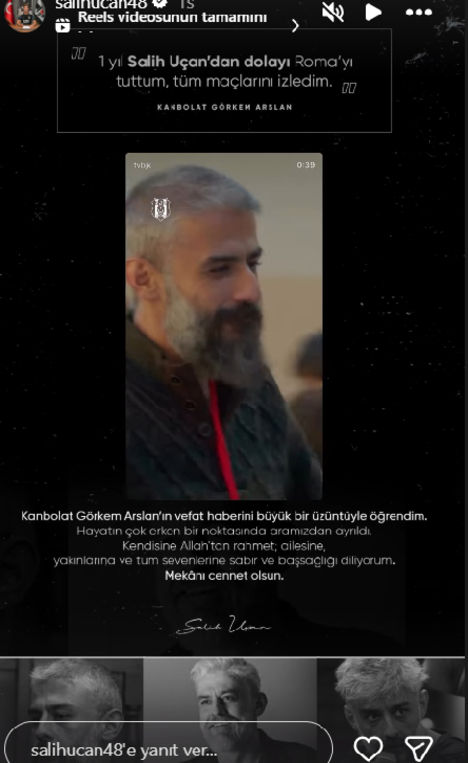 Salih Uçan: Kanbolat Görkem Arslan’ın vefat haberini büyük bir üzüntüyle öğrendim. Hayatının çok erken bir noktasında aramızdan ayrıldı. Kendisine Allah’tan rahmet; ailesine, yakınlarına ve tüm sevenlerine sabır ve başsağlığı diliyorum. Mekânı cennet olsun.