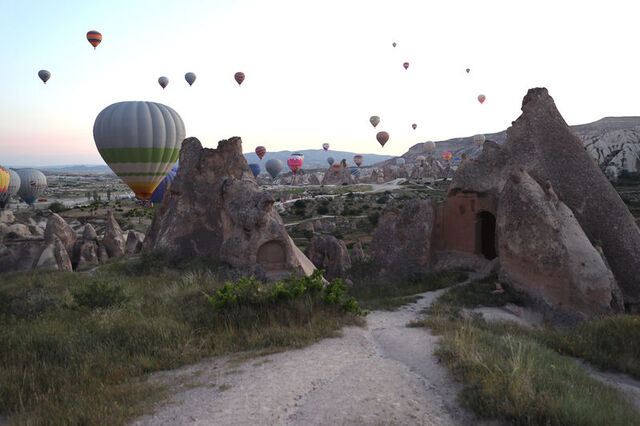 Göreme beldesi ile Çavuşin köyü çevresinden sepetindeki kafilelerle gökyüzüne yükselen balonları arka plana alarak fotoğraf çektirmek isteyen turistler, peribacaları çevresinde yoğunluk oluşturuyor. Fotoğraflarını daha ilgi çekici hale getirmek isteyen turistlerden kimisi rengarenk kostümlerle kimisi de kiraladığı klasik otomobille vadilerde en iyi fotoğraf karesine sahip olabilmek için çalışıyor.