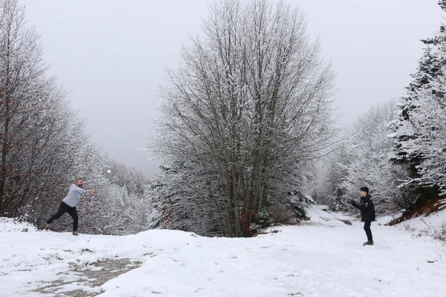 Bolu'nun doğal güzellikleriyle ünlü Abant Tabiat Parkı'nın beyaza bürünmesiyle tatilciler göl çevresinde yürüyüş yaparak vakit geçirdi