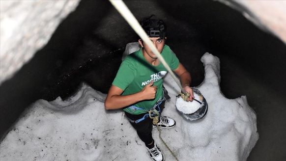 "Ölene kadar bu kuyuları dolduracağız. Bu kuyudan kar eksik olmayacak. Buraya karları temiz yerlerden topluyoruz. Damlardan bile kar topluyoruz ama eğer Hacılar'a kar az yağdıysa Erciyes'in temiz yerlerinden kürekle toplayarak bu kuyuları doldururuz. Kışın koymuş olduğumuz karları sıcak yaz aylarında gönül rahatlığıyla buz gibi içiyoruz. Kuyuya girmek de zahmetli iş, ipin sağlam olması lazım. Herkesin ipiyle kuyuya inilmez."
