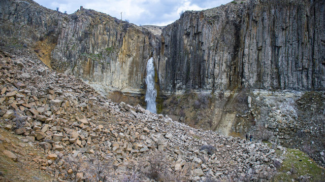Kar sularıyla canlanan Ekirek Şelalesi doğa tutkunlarını ağırlıyor