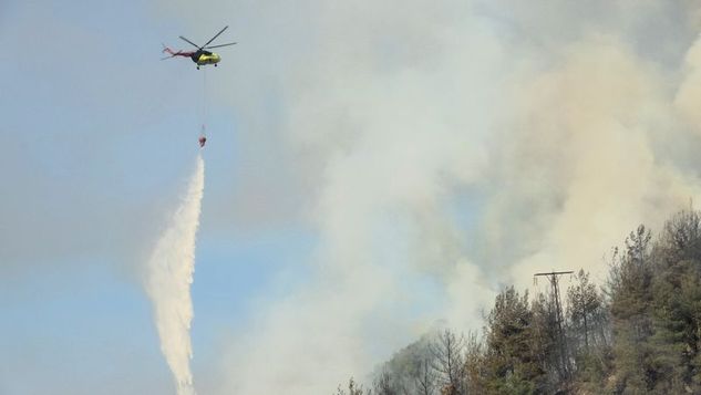 Ekiplerin yangını söndürme çalışmaları karadan ve havadan devam ediyor.