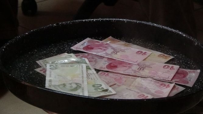 Paraları, çorba gibi karıştırmaya gerek olmadığını ve banknotların asla zarar görmediğini ifade eden Sarı, paraları aralıklarla yayarak kolonya ile dezenfekte ettiğini belirtiyor. Esnafın bulduğu bireysel çözüm ise akıllara, ‘Karadeniz fıkralarını’ getiriyor.