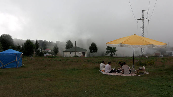 Doğu Karadeniz'de son günlerde artan nem oranıyla sıcaktan bunalanlar, soluğu yüksek rakımlı yaylalarda almaya başladı. Termometrelerin 33 dereceyi gösterdiği Trabzon'nda Akçaabat ilçesine bağlı Hıdırnebi Yaylası, serin havası ve bol oksijenli ortamıyla yoğun ilgi görüyor. Yaylada doğayla iç içe vakit geçirmek isteyen yerli ve yabancı turistler, sisle kaplı yamaçlarda yürüyüş yapıp, eşsiz manzaranın keyfini çıkarıyor