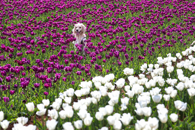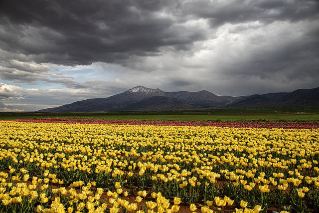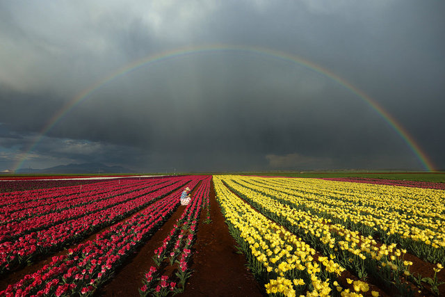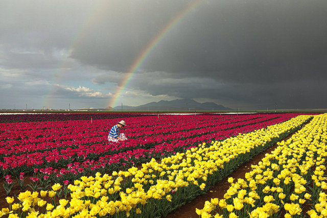 Karaman'da lalelerin açmasıyla yeryüzünde bir gökkuşağını andıran 50 dekarlık bahçe, bu yıl ziyaretçilere kapısını 15 Nisan'da açtı.