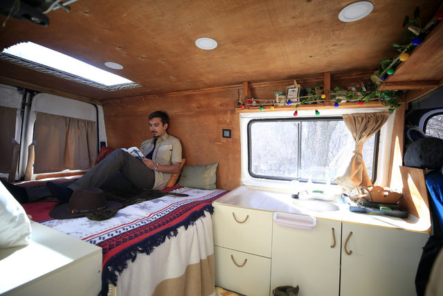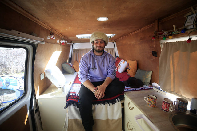AA'nın haberine göre Kasımoğlu, Ankara'ya getirdiği minibüsü, Solak ve diğer arkadaşlarının da yardımıyla kendi isteklerine göre karavana dönüştürdü.