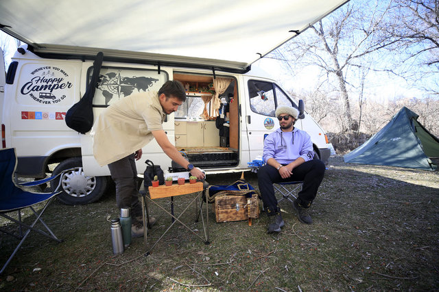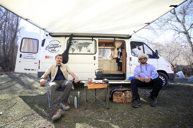 Yeme içme, yatak ve günlük ihtiyaçlarını karşılayabildikleri karavan ortaya çıkaran iki kafadar, 26 gün önce çıktıkları yolculuklarında Kırıkkale, Kırşehir, Nevşehir, Aksaray ve Kayseri'de çadır ya da karavanda konaklayıp, bu illerin doğal güzellikleri keşfetti.