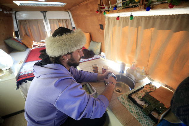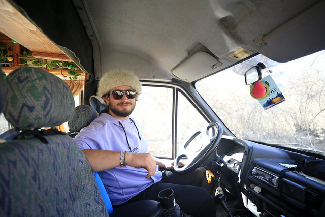 "Pandemi sürecinde ne yapabilirim diye düşündüm. Çay tarımı işinde çalışarak kazandığım parayla kendi imkanlarımla 1998 model bir minibüs aldım. Niyazi ağabey ile beraber bu aracı geliştirdik ve yollara düştük. Ben zaten 4 yıldır geziyordum. Niyazi ağabey ise çocukluğundan beri geziyor. Gezginlikten geldiğimiz için fazla konfor da aramıyoruz. Sürekli ruhumuzda olan minimalist bir yaşam biçimi vardı. Bu şekilde yollara düştük. Yaklaşık 26 gündür yollardayız."