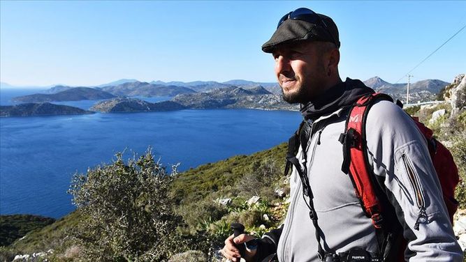 Türkiye'nin en uzun yürüyüş rotası olarak kabul edilen Karia Yolu'nun tanınması için proje hazırlayan ve rehber kitaplar yazan Özcan, sıra dışı yaşamıyla dikkati çekiyor