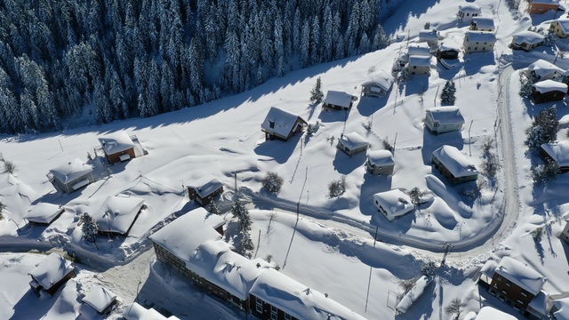 Kar yağışıyla beyaza bürünen Giresun'un 1700 rakımlı Kulakkaya Yaylası, kayda alındı
